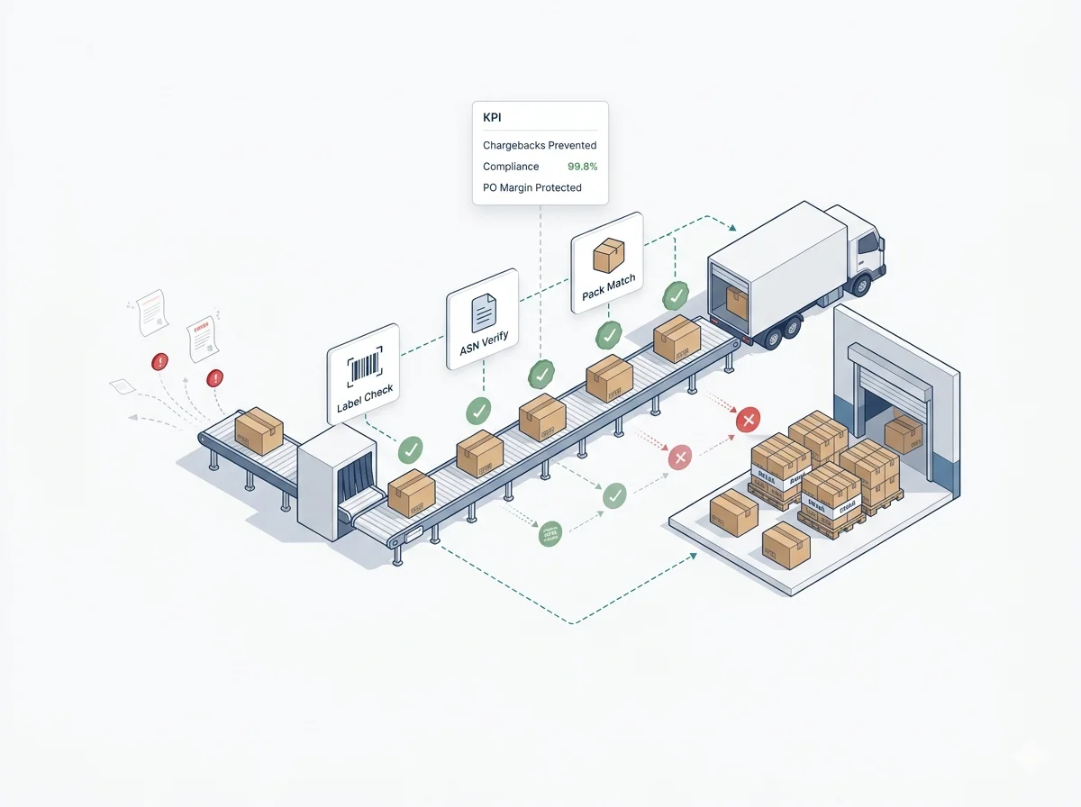 Retailers like Walmart and Target enforce strict compliance requirements — wrong labels, incorrect ASNs, or packaging mismatches result in chargebacks that can wipe out margins on a full PO. Retail Ready automates compliance at the source so shipments land right the first time, every time.